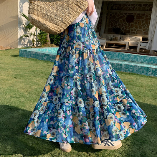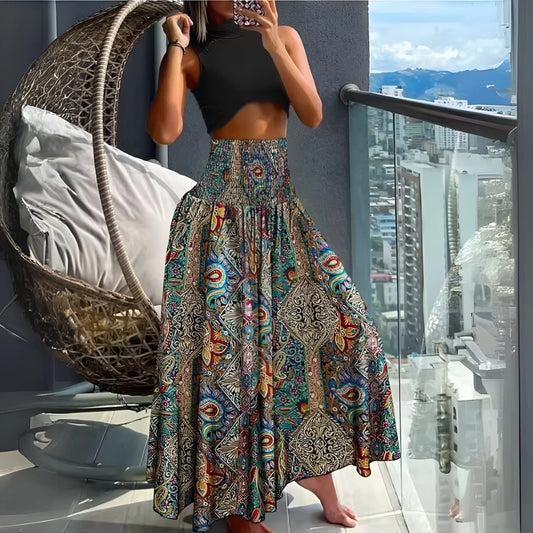 Amélina - Jupe taille haute élastique style bohème fleuri
