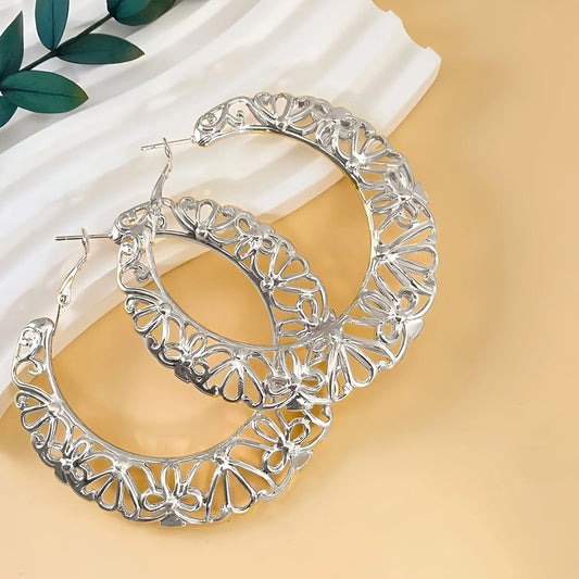 Clarisse - Boucles d'oreilles créoles vintage à motifs floraux sculptés