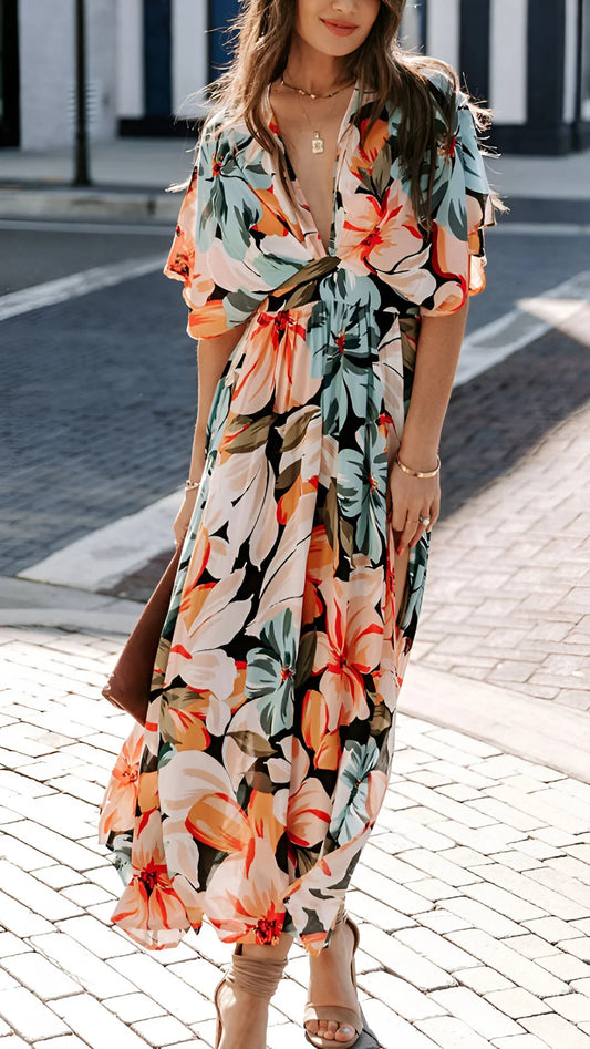 ÉCONOMISER 50%Alizée - Robe longue florale bohème à col en V profond