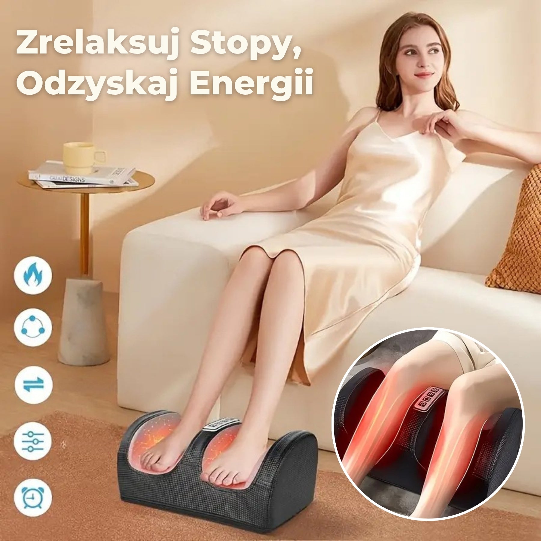 Po długim dniu Twoje stopy zasługują na najlepszą pielęgnację. Ten masażer stóp zapewnia kojący relaks dzięki różnym trybom masażu, takim jak ugniatanie, rolowanie i Shiatsu. Niezależnie od tego, czy masz ból stóp, czy po prostu potrzebujesz relaksu, ten masażer trafia w każdy punkt nacisku, sprawiając, że stopy czują się odmłodzone.