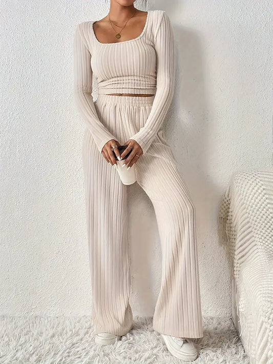 ÉCONOMISER 51%Wrocisława - Ensemble haut col en V et pantalon ample