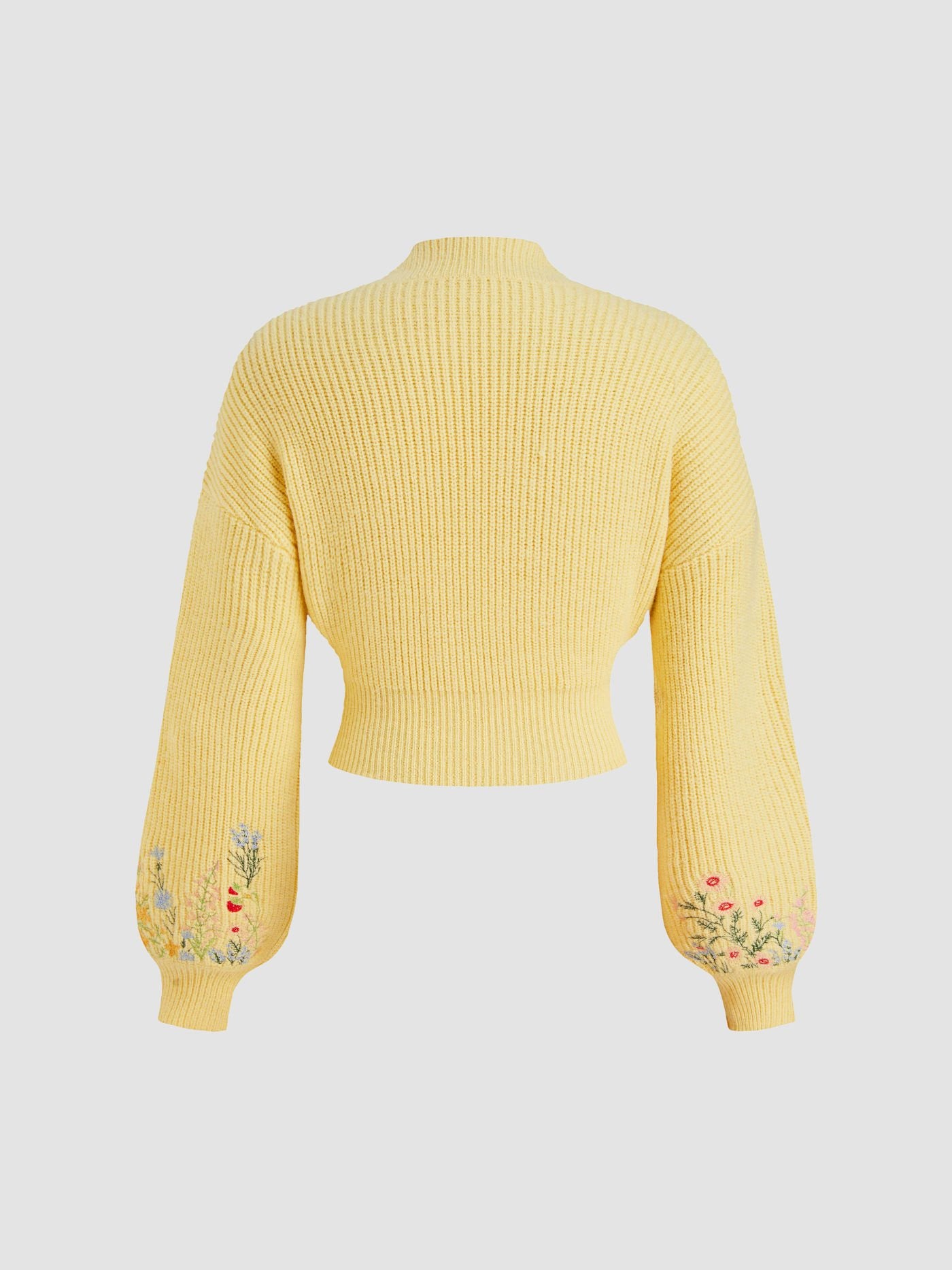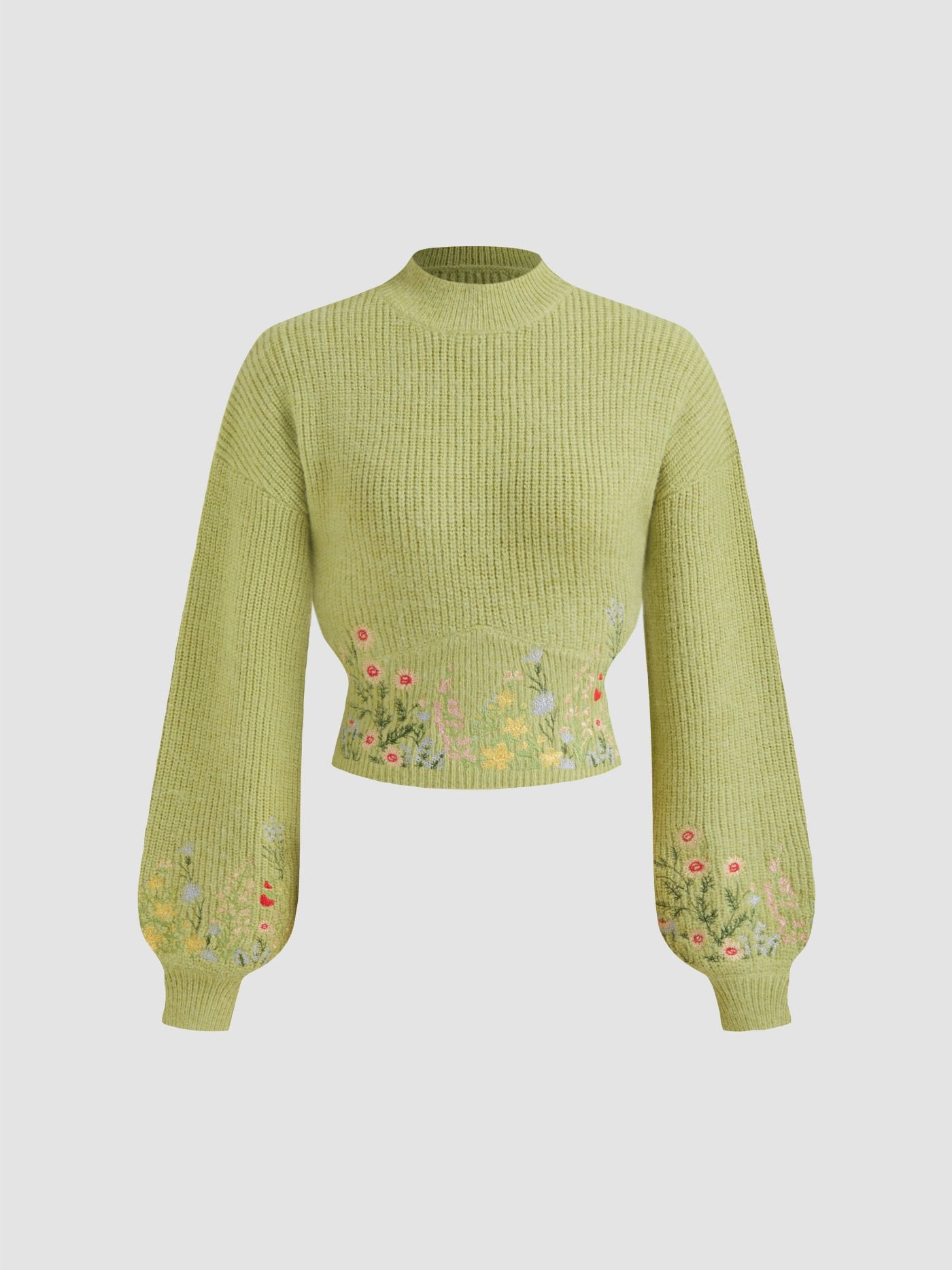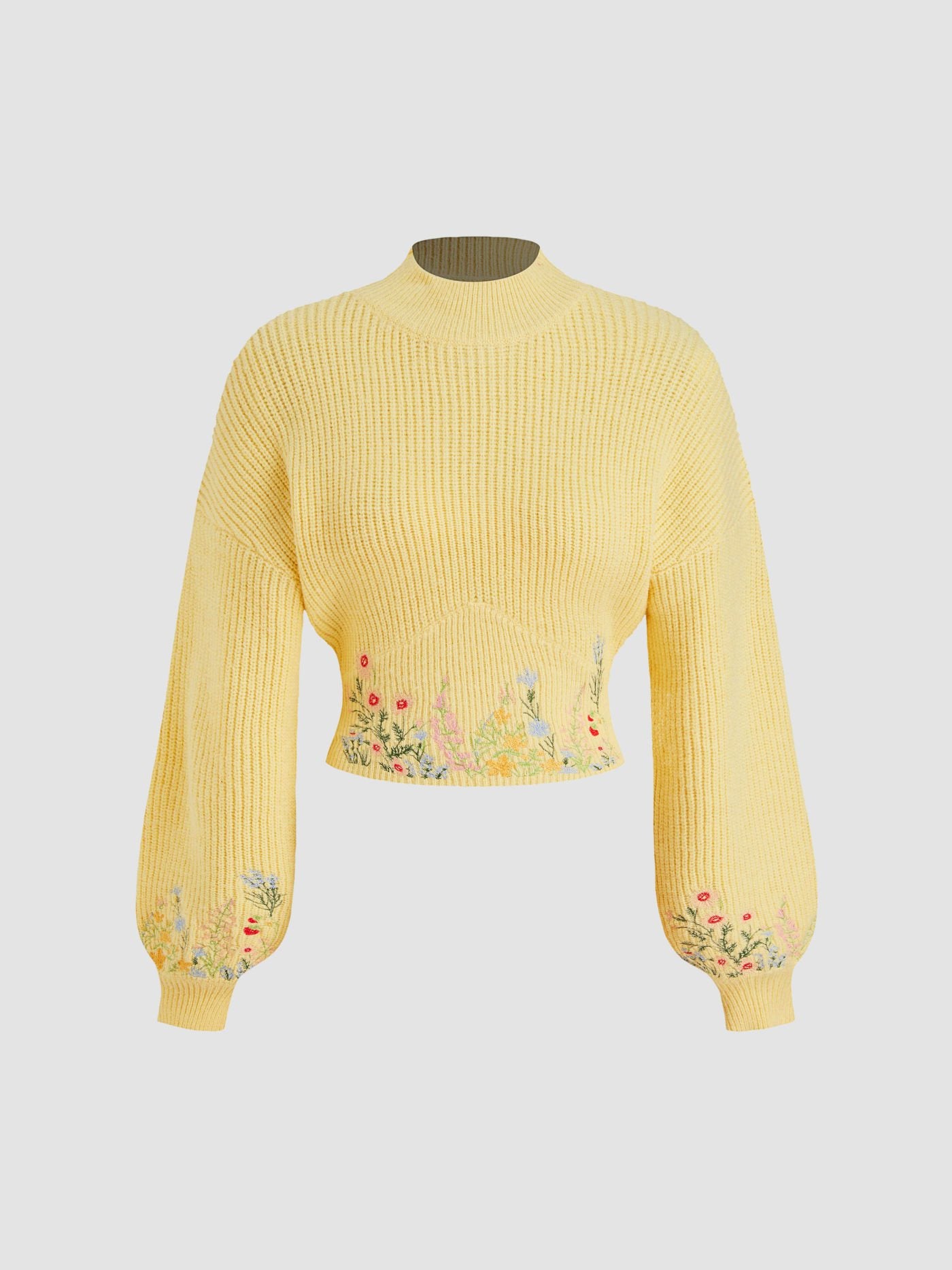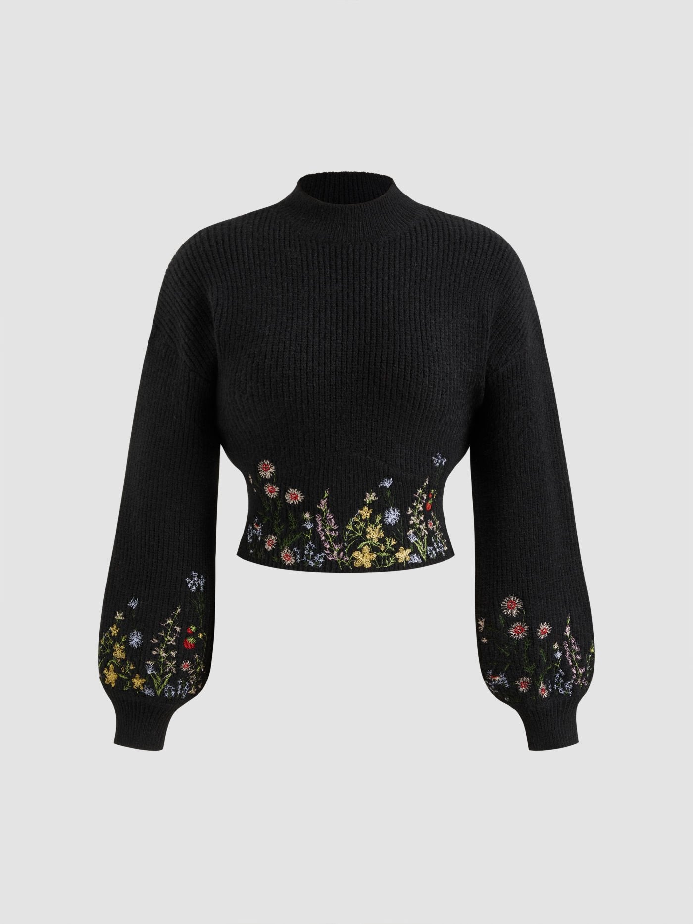 Ce pull court à col montant allie charme et confort grâce à sa délicate broderie florale et sa texture côtelée douce. Confectionné dans un mélange respirant d'acrylique, de polyester et de polyamide, il offre chaleur et élégance.