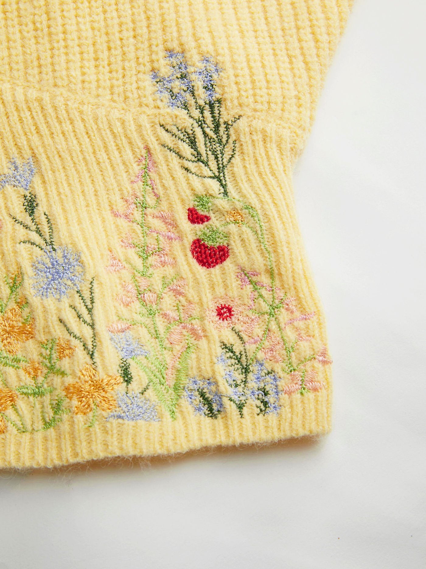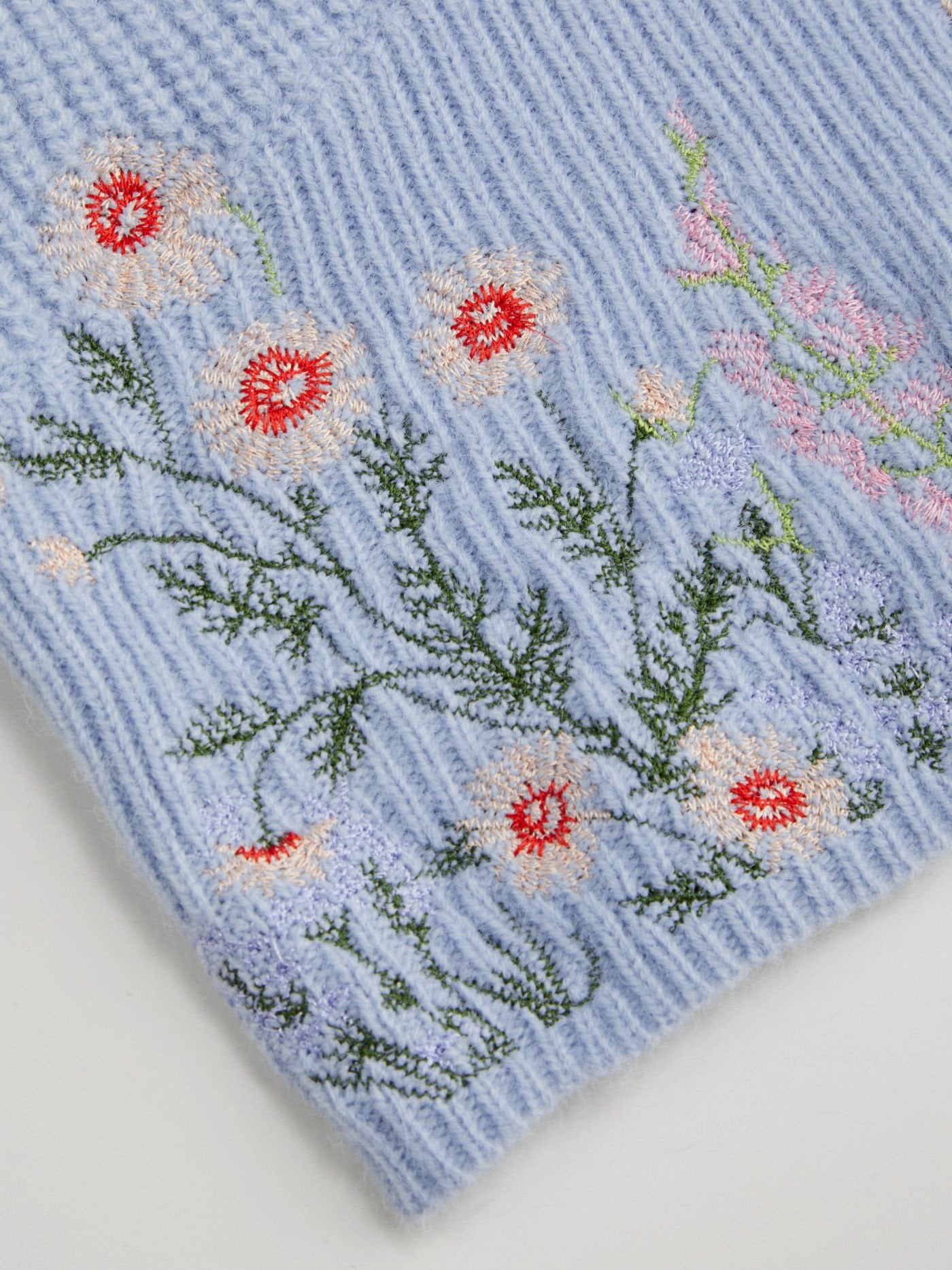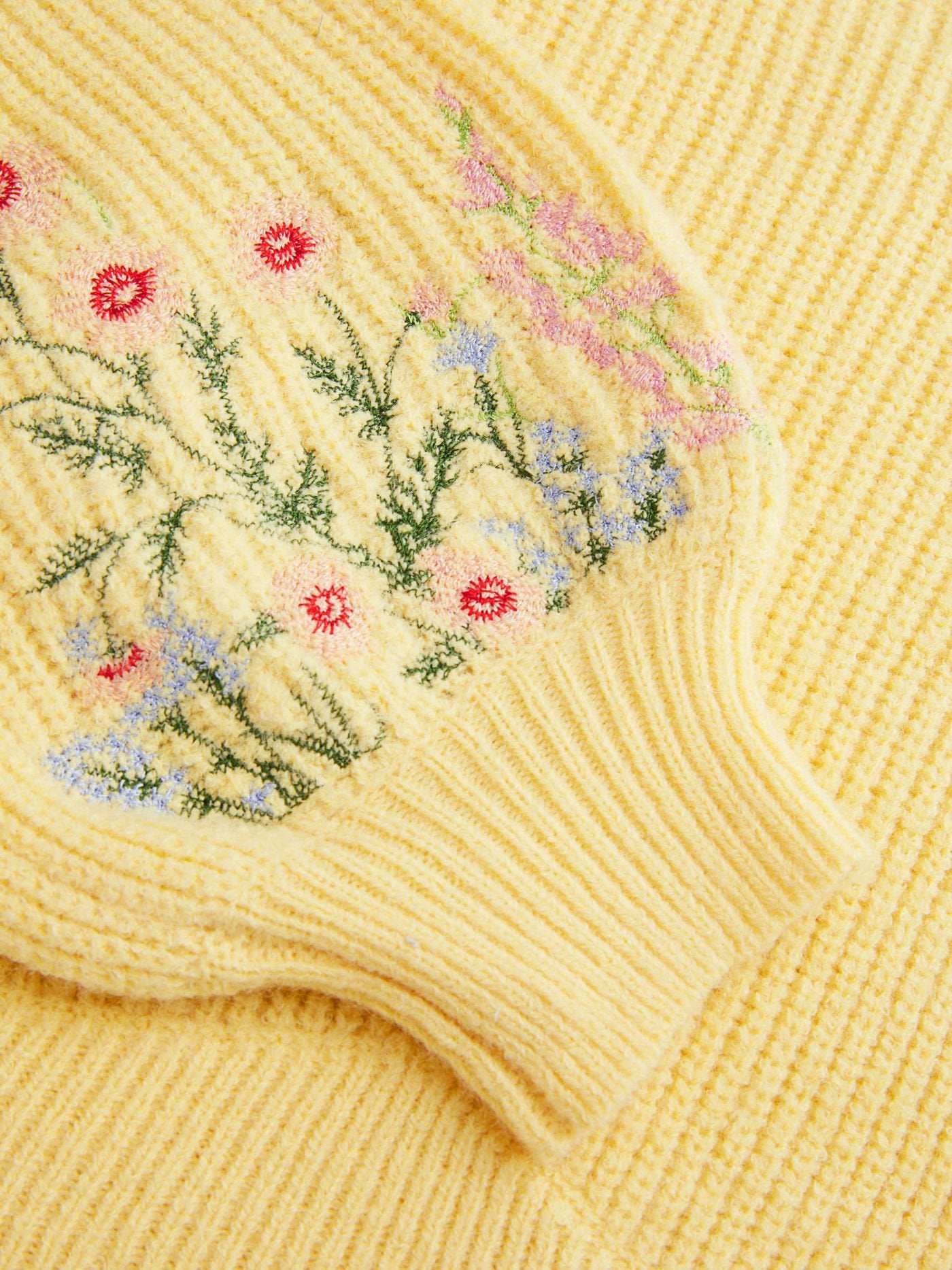 • Tricot côtelé avec broderie florale
